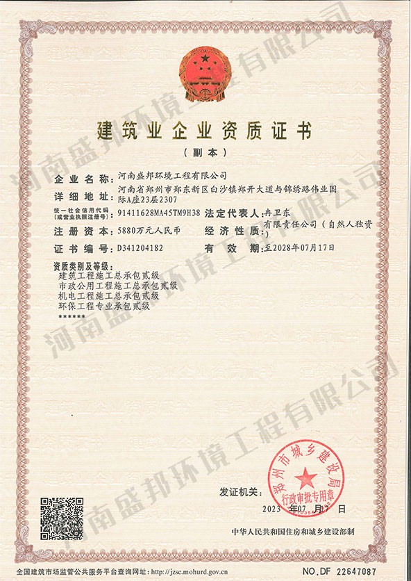 河南盛邦環(huán)境工程有限公司河南盛邦環(huán)境工程有限公司成立于 2018 年,注冊資金 5880 萬元, 是專注于環(huán)保產(chǎn)品研發(fā)、生產(chǎn)、銷售、施工、運營于一體的服務型企業(yè),more